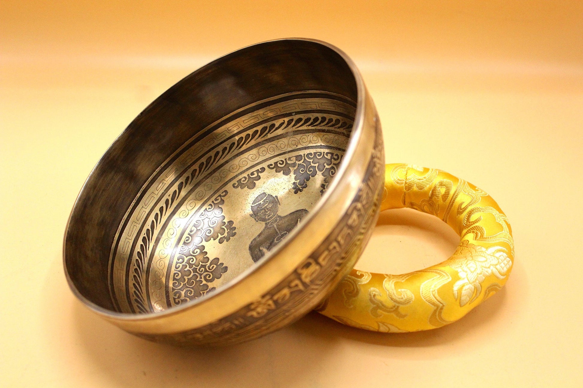 8 Inch Yogi Engraved Singing Bowl: Handmade Tibetan Meditation Bowl
