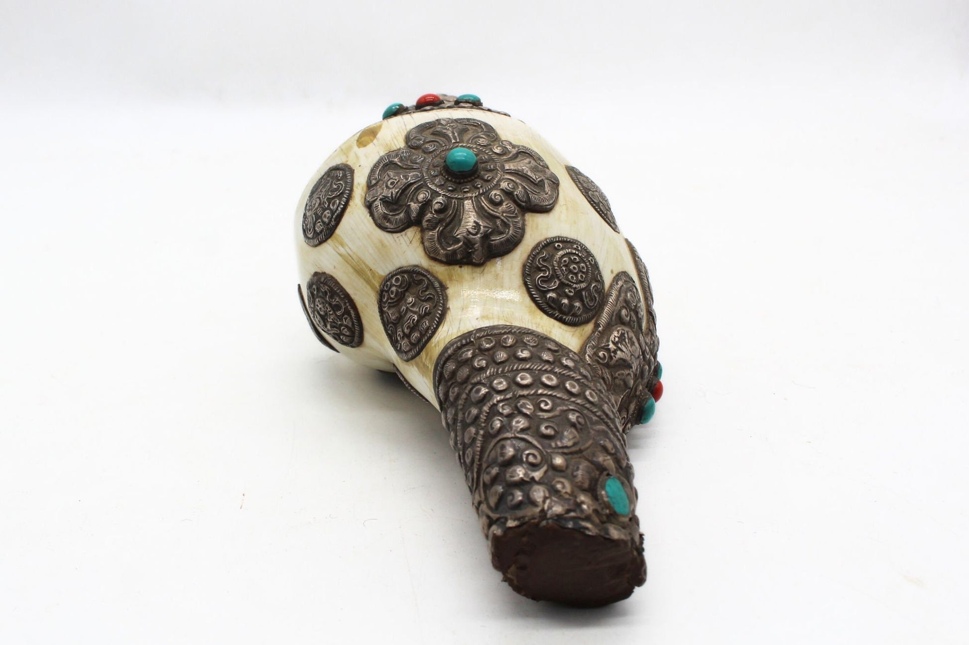 ''Antique Piece Sankha - Sankha with Encraved Dsigns and Moonga - Symbol of Lord Vishnu - Hindu Traditional Instrument - White Conch Shell''