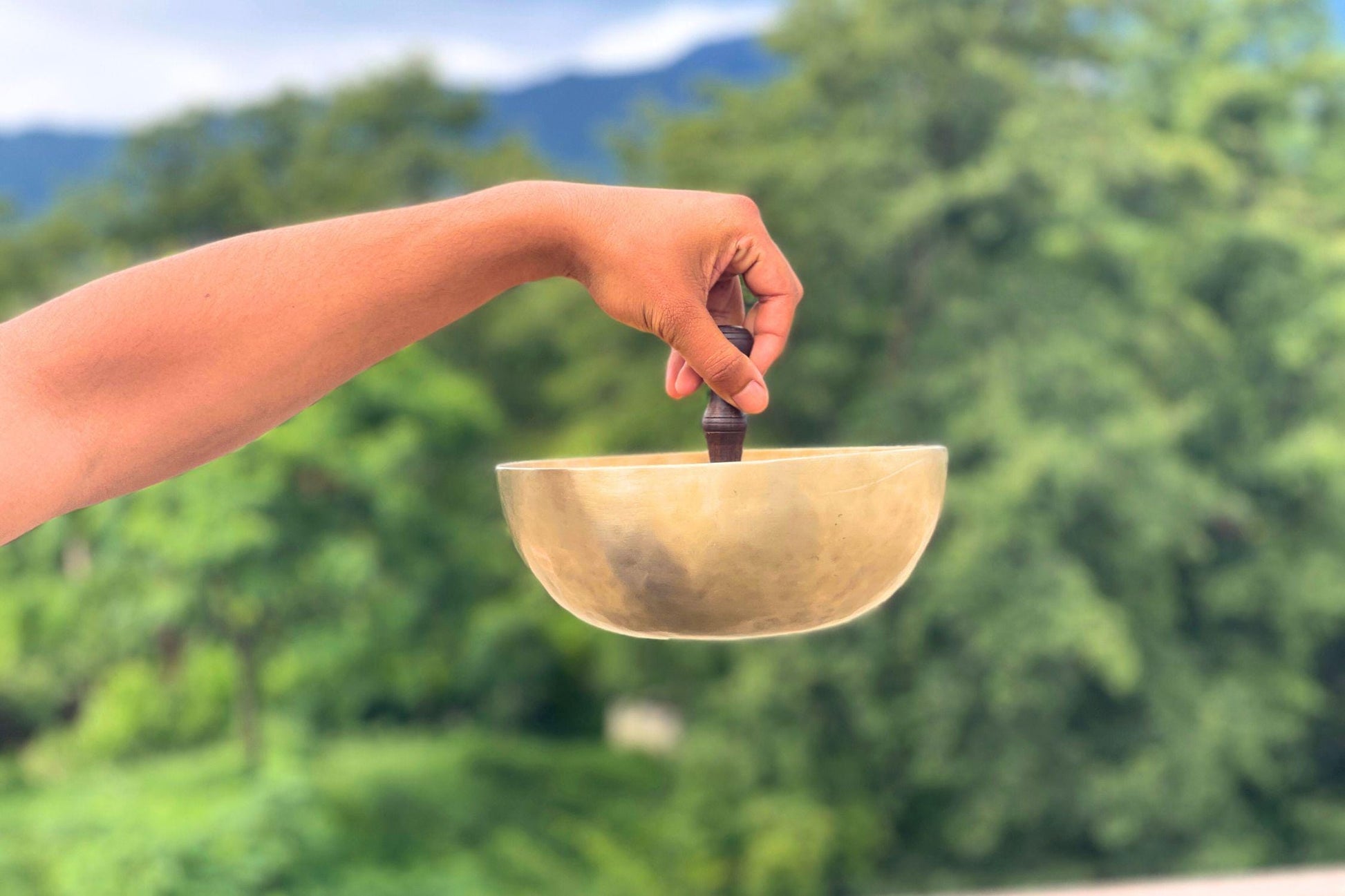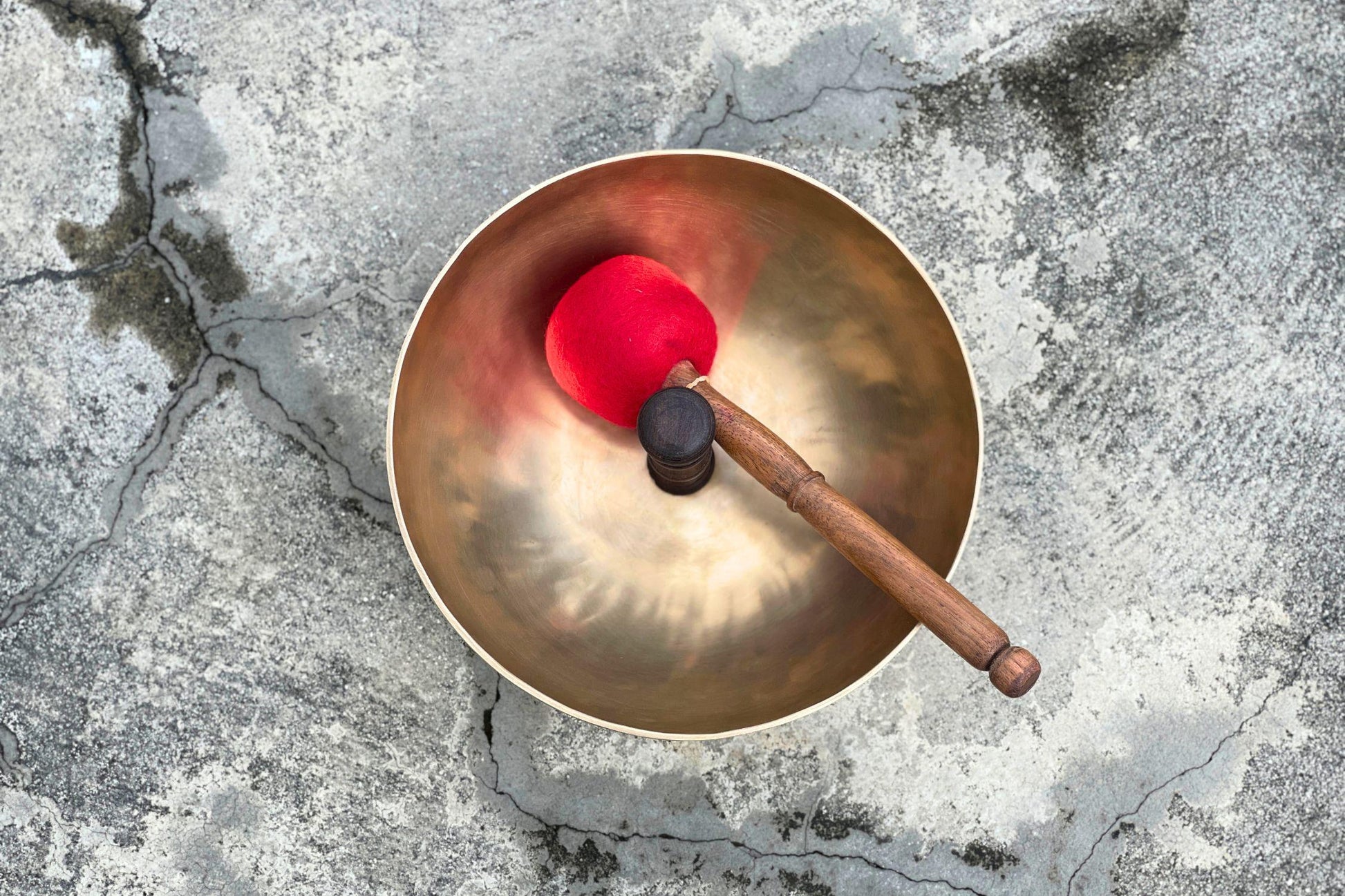 A singing bowls "sings" when you strike the edge of the bowl with the mallet and run it around the edge, producing highly energized vibrations, tones, and rhythms. These frequencies work in conjunction with the brain waves to induce deep meditation, deep relaxation, regeneration, and to relieve pain.
