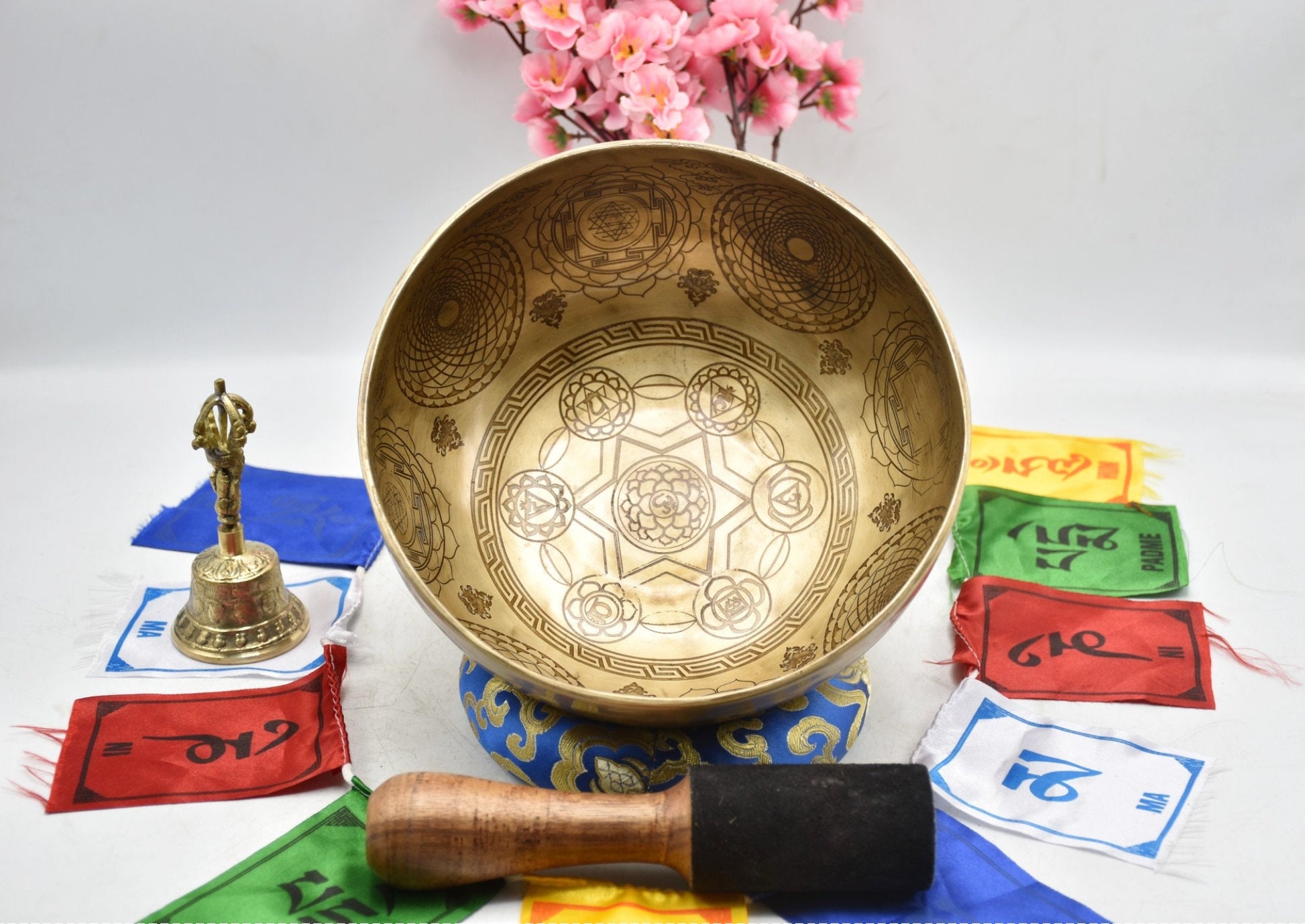 Engraved Singing Bowl: Handmade Tibetan Bowl for Meditation & Sound Bath