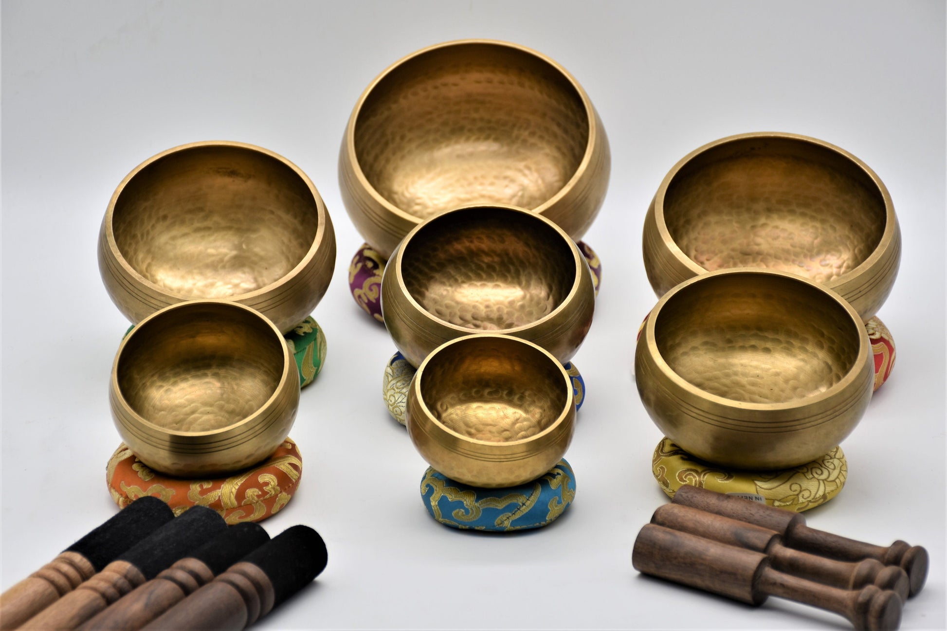 Hand-Beaten Tibetan Singing Bowl Chakra Set – Sound Healing, Meditation