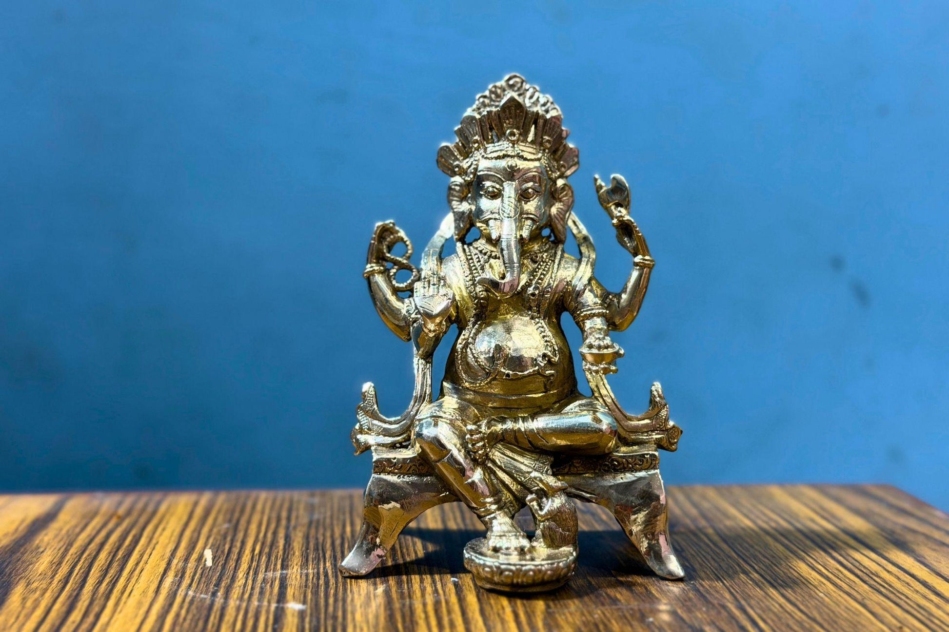 Handmade Brass Ganesh Statue – 6 Inch Seated Hindu God