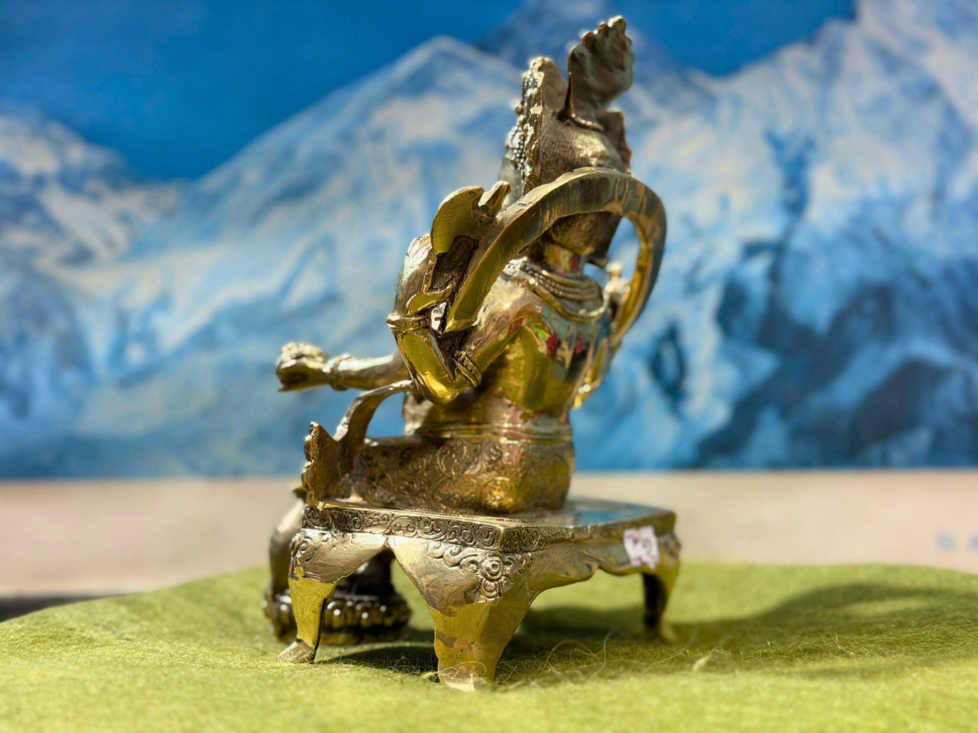 This statue is made of the high-quality solid brass and it has a height of about 6 inches and weighs about 450 grams thus, it has a solid, durable and high quality feel. The golden hue adds seminaries effect to it and thus it can be used in home temples, pooja rooms, meditation rooms, workplaces, and vastu placements.