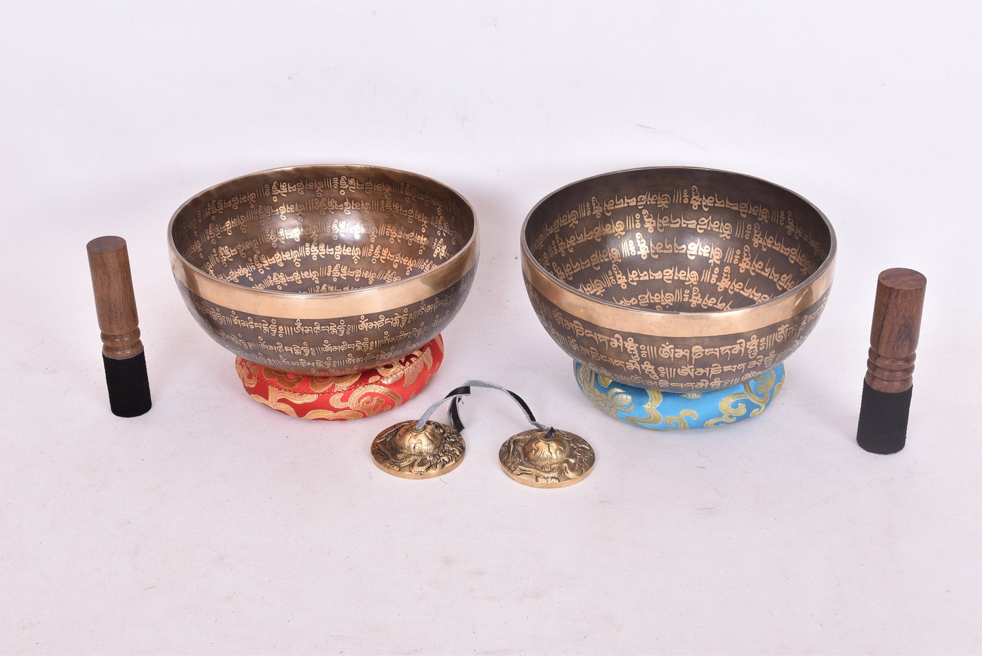 Handmade Mantra Carved Singing Bowl Set: Tibetan Sound Healing