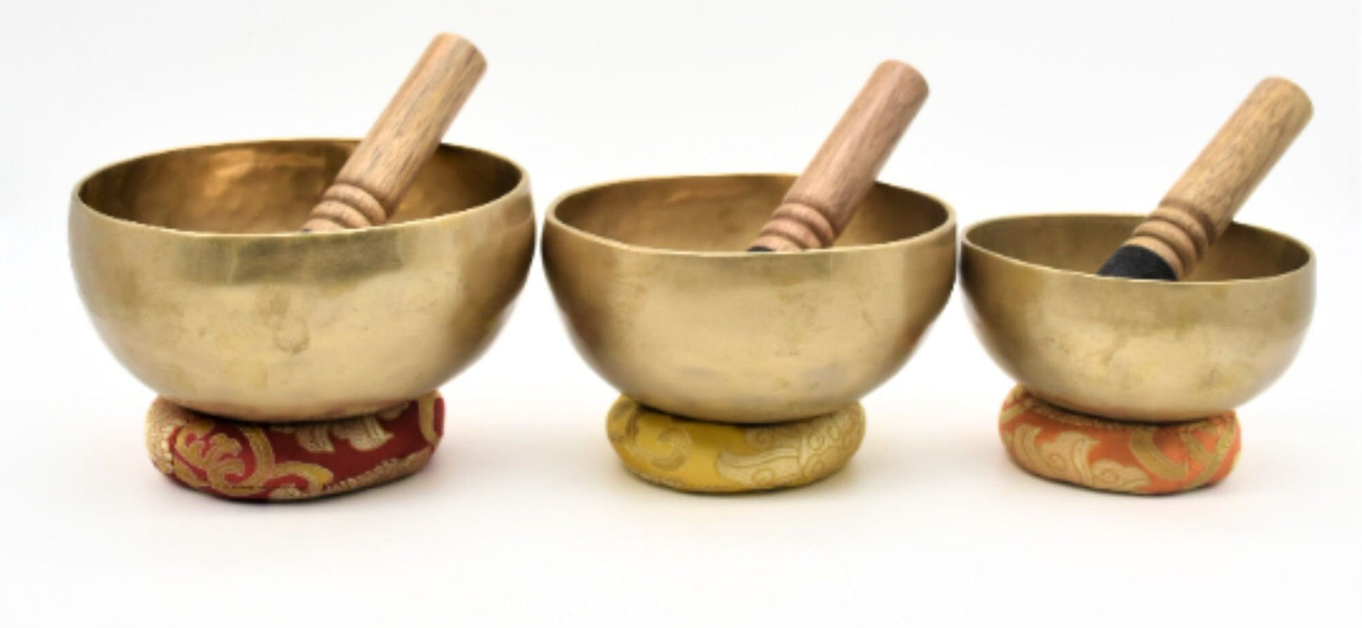 Handmade Tibetan Singing Bowl Set: Chakra Healing Sound Bath (5,6,7 inch)