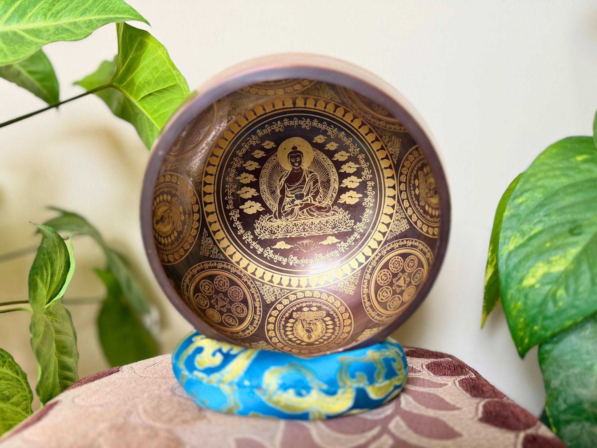 Handmade Tibetan Singing Bowl with Buddha Etching | Chakra Healing Gift
