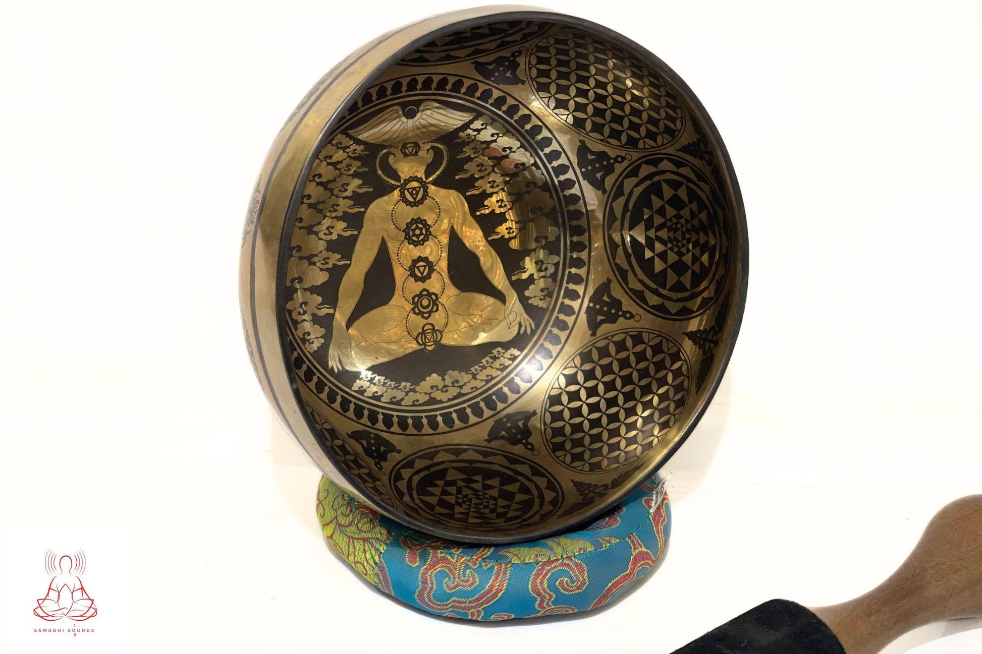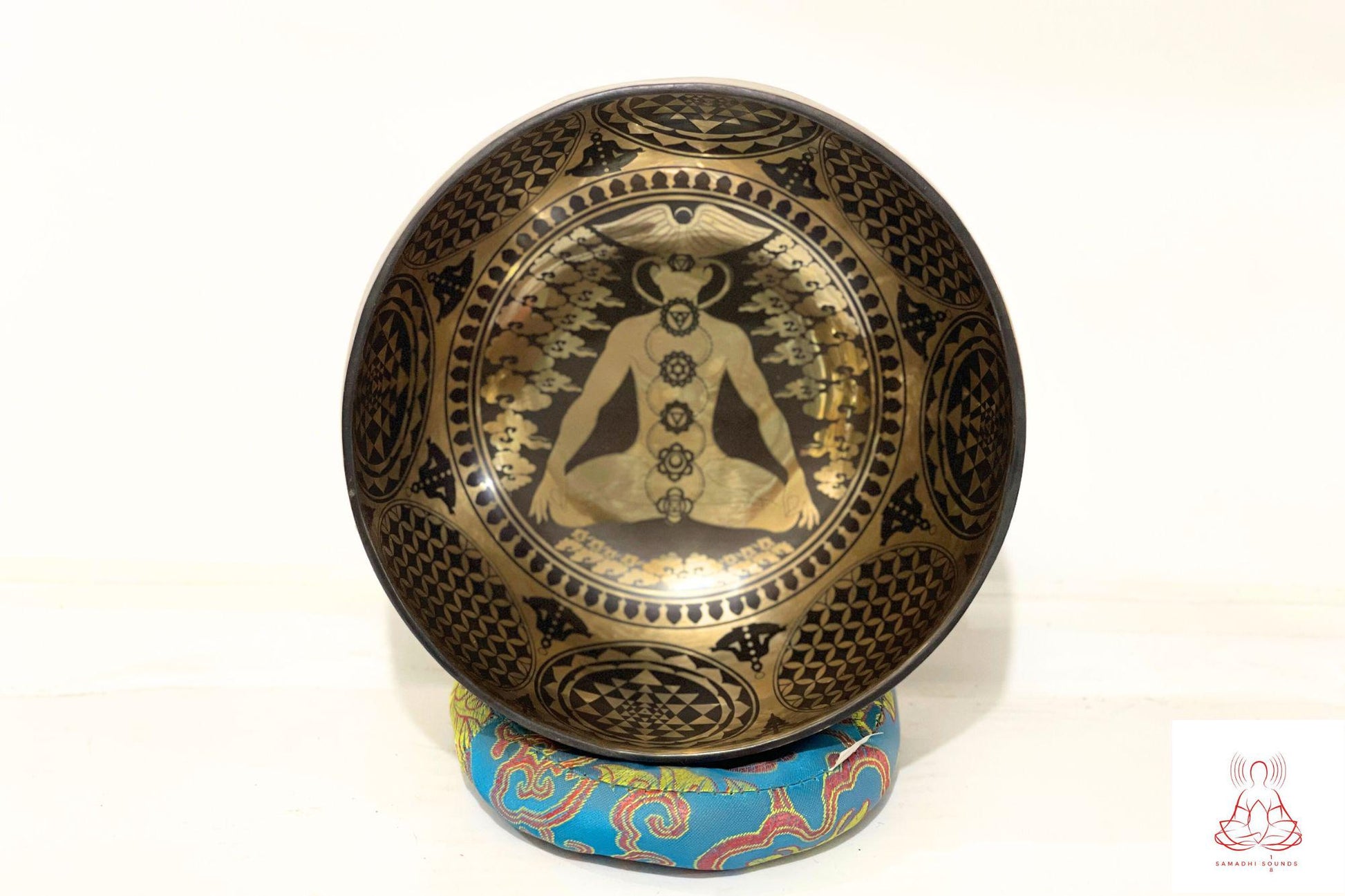 Tibetan Singing Bowl: Seven Chakra Yogi Design, Handmade in Nepal (6-12 inches)